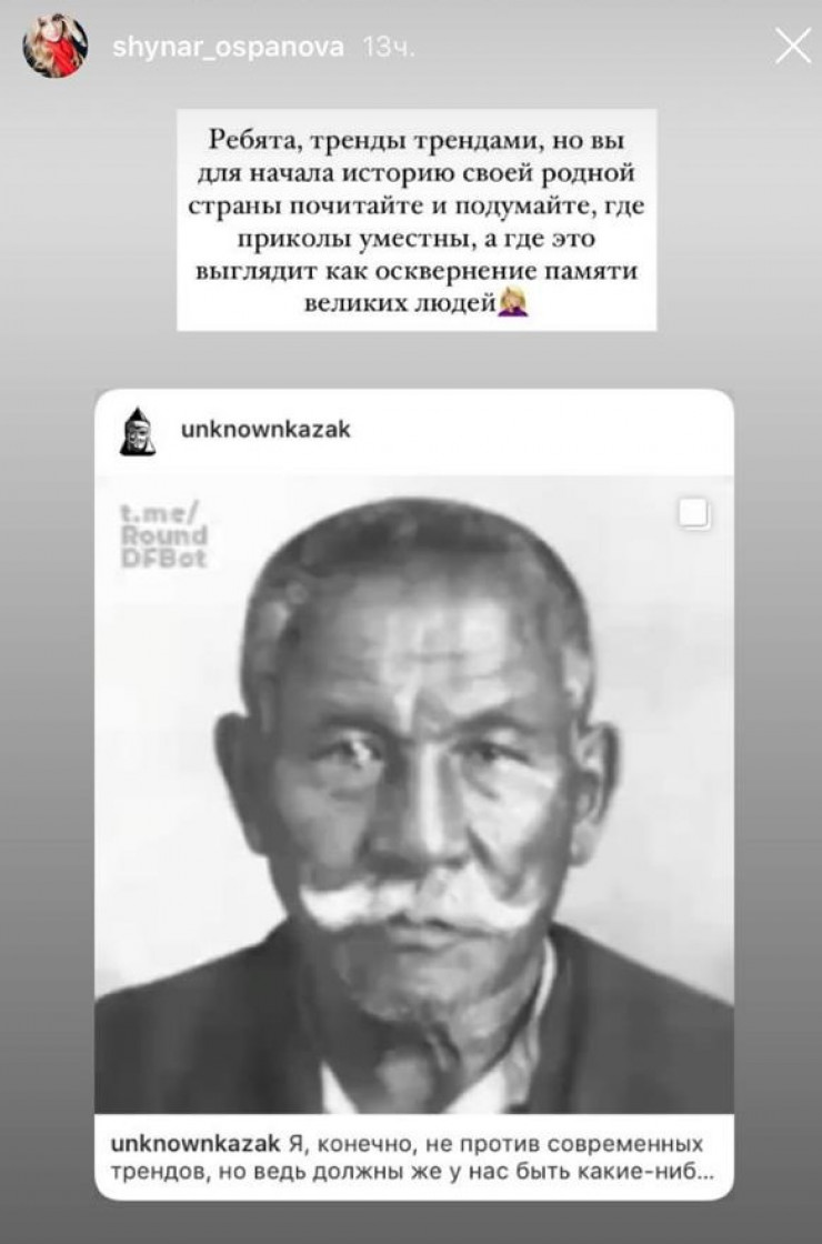 Одним из первых в Казнете видео с использованием фото исторической личности заметил автор Instagram-страницы "Неизвестный Казахстан" Диас Камериданов.