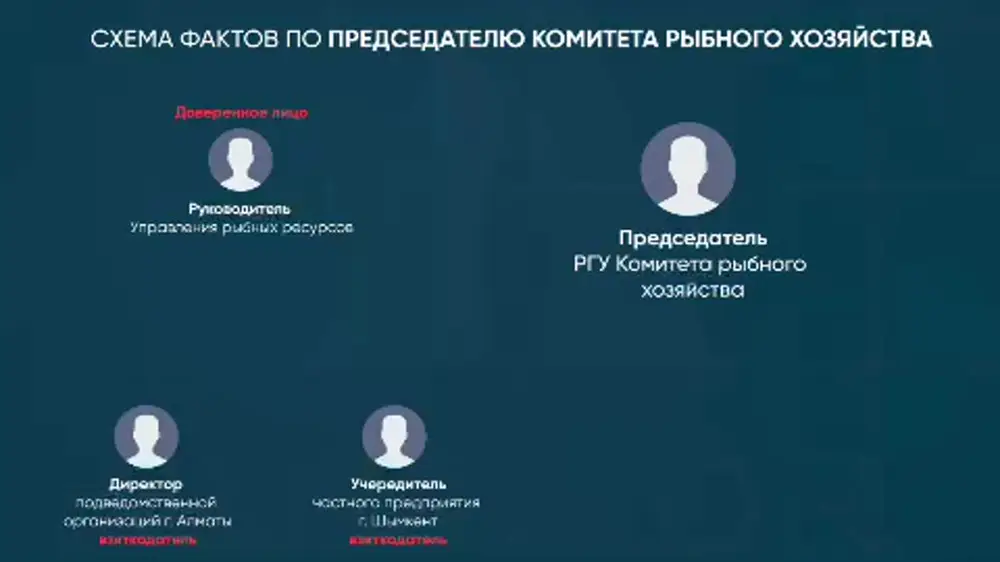 Антикоррупционная служба показала схему и переписку по делу председателя Комитета рыбного хозяйства Министерства сельского хозяйства и других лиц, передает Tengrinews.kz.