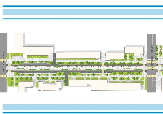 На улице планируют создать новый бульвар и две пешеходные зоны. Они станут продолжением пешеходной зоны Арбата.
