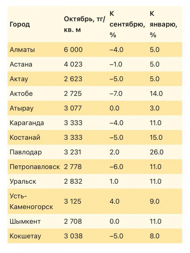 В то же время в Павлодаре, Уральске, Усть-Каменогорске цена незначительно выросла.