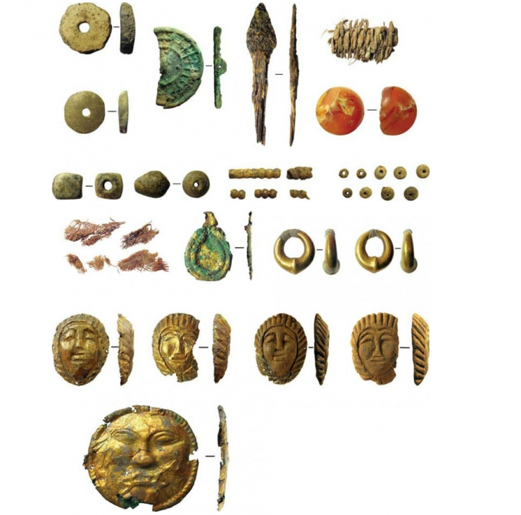 "С одной стороны, головной убор (расшитая золотыми бляшками накидка и налобная повязка-диадема с антропоморфными изображениями) представлял собой имитацию царского облачения в подражание позднеримским (эллинистическим) образцам. С другой стороны, определенные стилистические особенности резных деревянных личин указывают на некий центрально-азиатский контекст. Это позволяет предположить, что была похоронена иноземка, девушка не сармато-аланского происхождения. Данное предположение, несомненно, будет в дальнейшем скорректировано после проведения генетических исследований", - говорится в исследованиях.