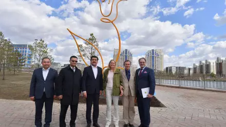 В честь 30-летия установления дипломатических отношений между Республикой Казахстан и Королевством Нидерландов группа компаний "АрселорМиттал" и Посольство Королевства Нидерландов в Центральной Азии подготовили подарок Астане в виде скульптуры "Тюльпан".