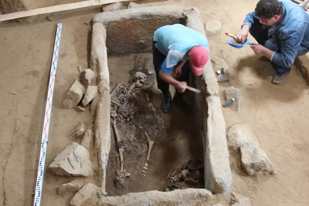 "Вчерашний день принес нам новую интересную особенность изучаемого захоронения. В результате раскопок удалось сделать интересное наблюдение, которое открывает новую возможность для понимания погребального зодчества сакской эпохи. На дне могильной ямы мы обнаружили каменный саркофаг, он был обложен тщательно подогнанными каменными блоками, валунами и выглядит это довольно необычно для внутримогильных сооружений того времени ", - пояснил руководитель экспедиции. По его мнению, эта гробница могла восприниматься древними людьми как жилище умершего, в котором есть пища, одежда, а также различная утварь, необходимая человеку в загробном мире.