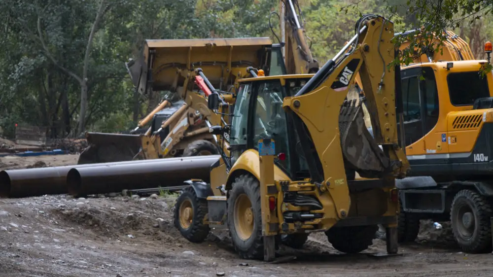 Корреспондент Tengrinews.kz отправился в микрорайон Ерменсай 1 октября, чтобы посмотреть, что здесь происходит с дорогами во время дождя. Сейчас работы на улице Жаксылыка Ушкемпирова ведутся совсем недалеко от поворота с проспекта Аль-Фараби. По тротуару с левой стороны улицы лежат водопроводные трубы. Несмотря на дождь, в одном из мест рабочие прорезают асфальт установленным на тракторе грунторезом.