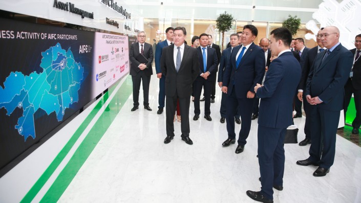После открытия форума Мамин и Хурэлсух посетили МФЦА, где ознакомились с его деятельностью по развитию биржи, суда и международного арбитражного центра.
