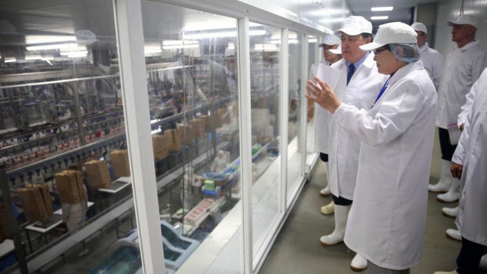 Ознакомление с развитием отрасли сельского хозяйства продолжилось во время посещения мясоперерабатывающего комплекса по производству мраморной говядины KazBeef Group. Аскар Мамин осмотрел производственный цех предприятия, где в 2019 году после реконструкции внедрены новейшие технологические решения по переработке мясной продукции, соответствующие мировым стандартам качества. Мощность предприятия составляет 120 голов КРС в сутки, или 10 тысяч тонн мяса в год.