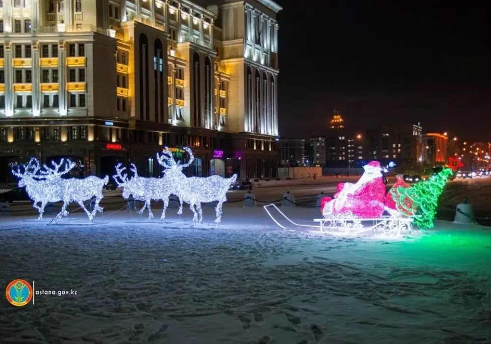 Городская площадь, Ботанический сад, территория EXPO-2017, парк "Жетысу", территория у торгово-развлекательного центра "Хан Шатыр", Президентский парк, площадь у монумента "Қазақ Елі", парк "Ататюрк", набережная реки Есиль, парк "Жеруйық", набережная реки Акбулак и территория у спортивного комплекса "Алатау" преобразились благодаря объемным декорациям, елкам, оригинальным пряничным домикам.