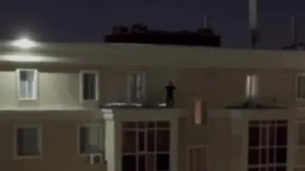 Выяснилось, на видео, опубликованном в соцсетях, засняли девушку. На кадрах видно, что она забралась на крышу балкона на последнем этаже и чуть не упала вниз. На помощь ей вовремя подоспели полицейские.