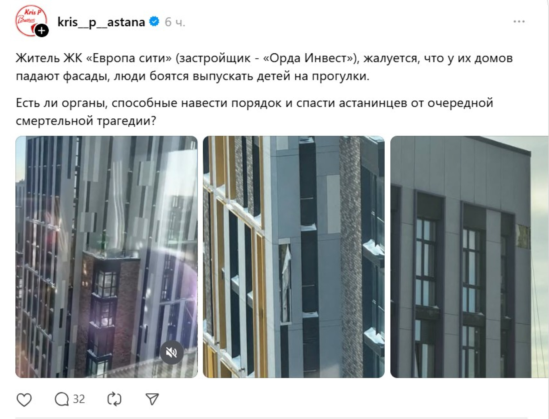 В Астане вновь обрушилась облицовка? Аким ответил на жалобы в соцсетях