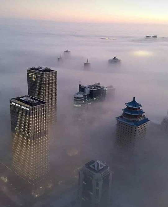 Пользователи Сети делятся фотографиями плотного тумана, накрывшего Астану и Алматы, передает корреспондент Tengrinews.kz.