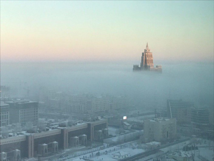 В Астане туман начал формироваться с вечера 16 января, а в Алматы - ранним утром 17 января.