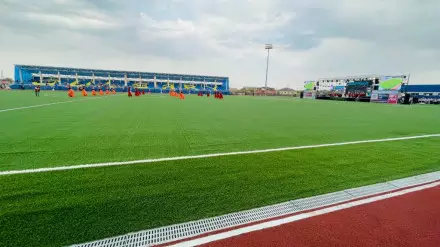 В честь открытия стадиона сборная Жылыойского района провела первый матч с командой сотрудников месторождения Тенгиз.