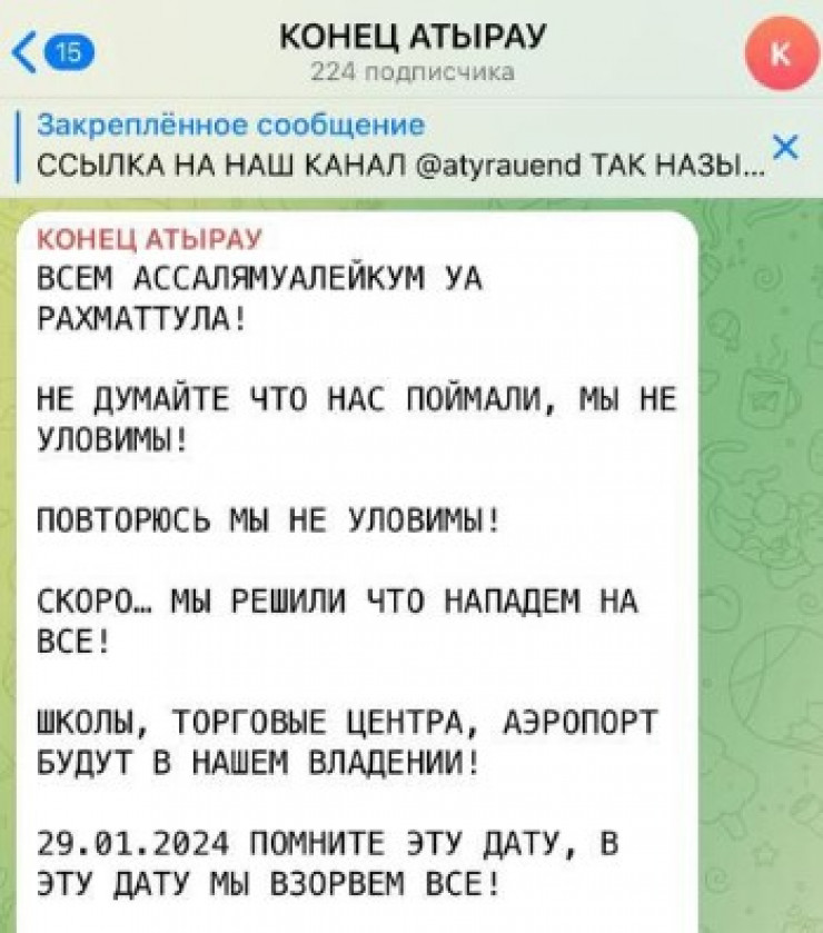 "Эти сообщения призваны спровоцировать панику среди населения. Просим граждан не поддаваться на провокации и соблюдать спокойствие! Ситуация на контроле у правоохранительных органов", - обратились к жителям региона в департаменте полиции Атырауской области.