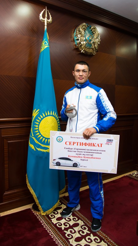 Кызылординский призер чемпионата мира по боксу Камшыбек Конкабаев получил авто от акима области, передает Tengrinews.kz со ссылкой на пресс-службу акима Кызылординской области.