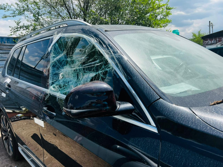 Автомобиль BMW X7 уже на территории штрафстоянки с разбитым стеклом