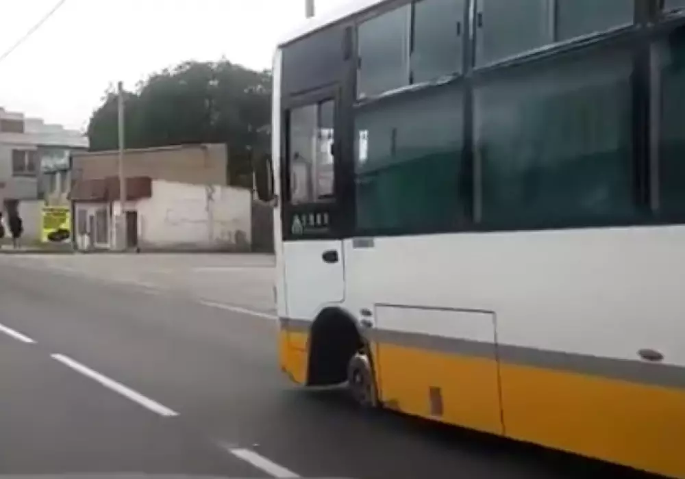 В Шымкенте водитель одного из маршрутных автобусов передвигался без одного колеса, передает Оtyrar.kz.