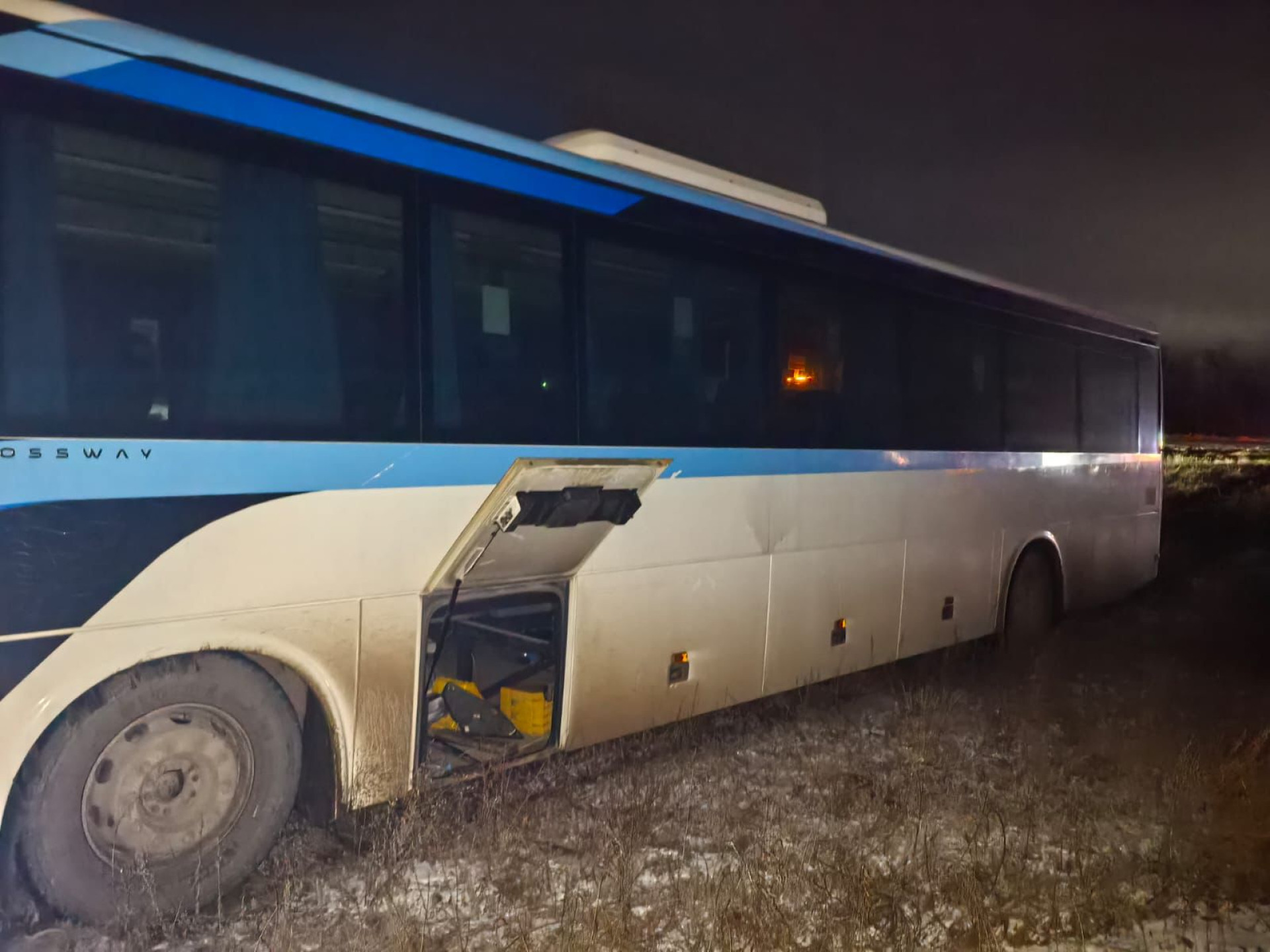 "По предварительным данным, водитель пассажирского автобуса марки "Ивеко" допустил столкновение с движущимся впереди экскаватором. В настоящее время на месте ДТП работают сотрудники полиции и департамента по чрезвычайным ситуациям", — говорится в сообщении полиции.