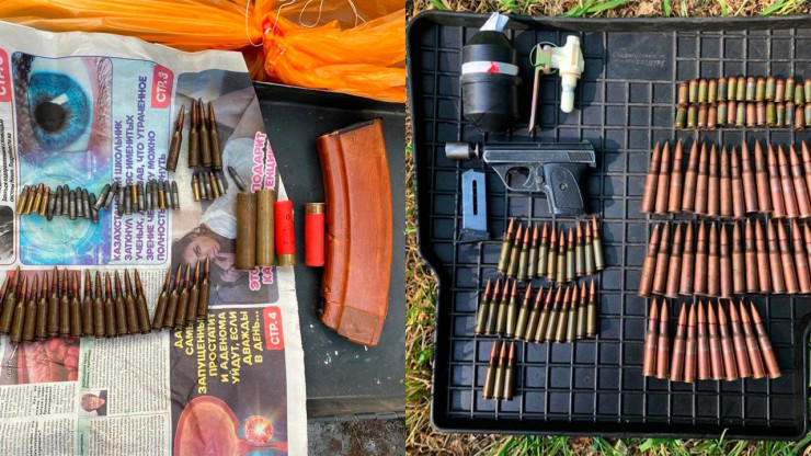 "В результате обнаружены и изъяты 42 единицы (автомат МР-40, снайперская винтовка Драгунова, 22 ружья, 18 пистолетов) оружия, 8 гранат, 2 снаряда от РПГ, 4051 патрон различного калибра, а также бронежилеты, магазины от автоматов, радиостанции и ножи", - говорится в сообщении.