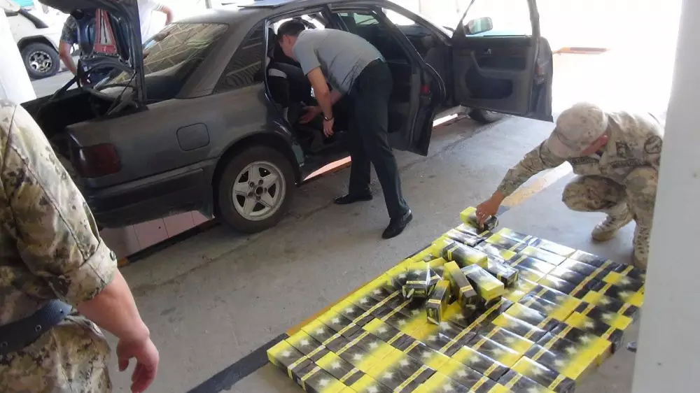 На таможенном посту МЦПС "Хоргос" в ходе таможенного контроля авто марки Audi 100, принадлежащего гражданину Казахстана, обнаружены табачные изделия весом более 20 килограммов в количестве 102 блока. Сигареты были спрятаны в потайном месте, между спинкой сиденья и багажным отделением автомобиля.