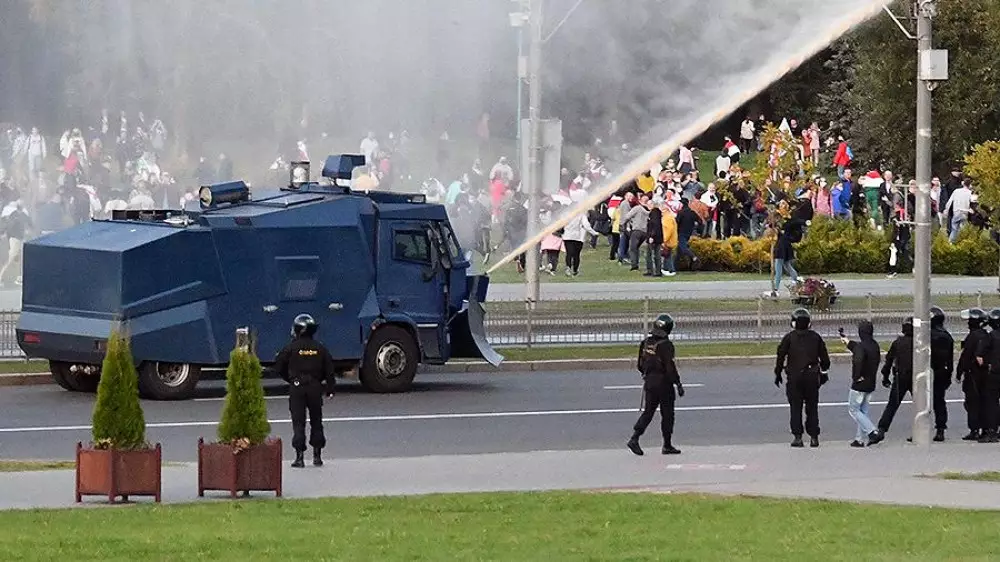 Количество единиц закупаемого товара – 1. Помимо водомета, который способен разогнать толпу в радиусе 55 метров, выбрасывая не менее 40 литров в секунду, автомобиль оборудован двумя баками – красным и синим. Синяя емкость предназначена для красящего вещества объемом не менее 30 литров, красная – для слезоточивого вещества, объемом не менее 100 литров.
