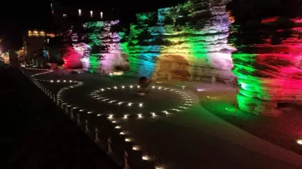 Изначально проект планировался как динамично развивающийся объект благоустройства города, отметил Марат Сюников. Для этого было закуплено все необходимое оборудование. На верхней смотровой площадке предусмотрены лазерные проекторы для проведения световых представлений. На нижней площадке установлен проектор, который транслирует на срез скалы изображения о достопримечательностях Мангистау или любого другого сюжета. Все световое оборудование на скале имеет возможности менять сценарии освещения. Однако в реальности, как отметил Сюников, многое или не работает совсем, или работает с большими неисправностями. При этом расположенные на объекте видеокамеры отображают действия каждого посетителя. К тому же два года подряд на безопасность и содержание технического состояния объекта выделяются по 40 миллионов тенге.