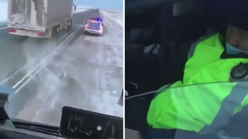Артынша жүк көлігін тоқтатып, өз көлігі тұрған жерге жеткен, полиция қызметкерлері де патрульдік көлікпен сол жерге қарай барған. Онда жүргізушімен сөйлескеннен кейін олар тек ауызша ескерту жасаумен шектелген. Осы оқиғаға қатысты әкімшілік хаттама толтырмағаны үшін полиция қызметкерлері тәртіптік жауапқа тартылады", - деді ведомство баспасөз қызметіндегілер.