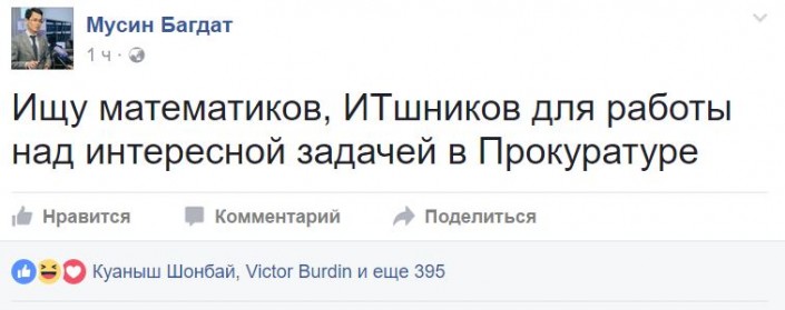 Объявление о наборе сотрудников Багдат Мусин опубликовал на своей странице в Facebook.
