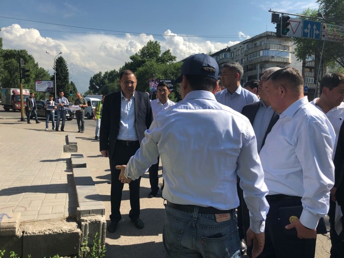 На улице Тимирязева Байбек предложил пересмотреть схему организации движения перед заправочной станцией на углу улицы Манаса с приоритетом для пешеходов, обустроив тротуар с безопасной зоной.