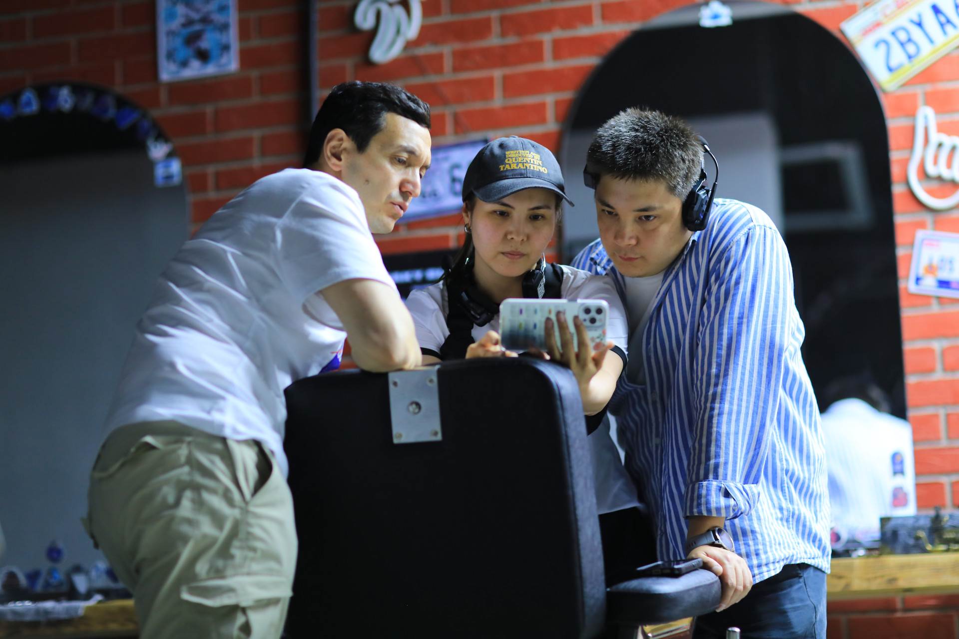 Даурен Сергазин, Азамат Сатыбалды и сьемочная команда во время