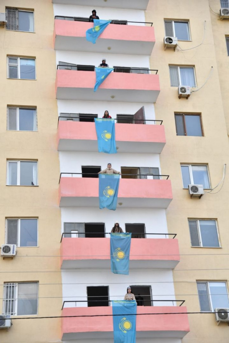 "Мой дом как раз напротив этой многоэтажки, где развеваются флаги, - сказала Инкар. - Буду сейчас из окна любоваться. Сегодня на выходных с дочерью учим стих - в ее школе будет праздничный утренник ко Дню Республики".