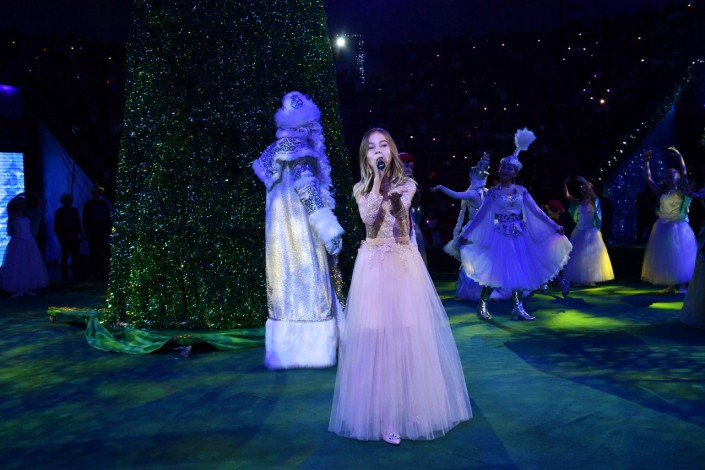 Праздничную программу "Новогодние чудеса" для детей подготовили артисты цирка, показав световое лазерное шоу, сопровождающееся выступлениями дрессированных животных, акробатов, жонглеров. Маленьким гостям вручили подарки, в том числе GPS-часы с электронной системой слежения для родителей, канцелярские товары, развивающие игры, мягкие игрушки, наборы для граттажа и художников, сладкие подарки и другое.