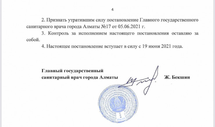 Главный санитарный врач Алматы Жандарбек Бекшин подписал новое постановление, передает Tengrinews.kz.