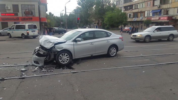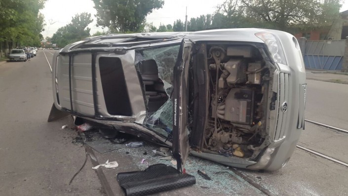 Со слов очевидцев, автомобиль Nissan ехал по улице Манаса на зеленый свет и столкнулся с внедорожником Toyota Highlander, который выехал на запрещающий сигнал светофора. Внедорожник опрокинулся. Пострадали шесть человек, в том числе беременная женщина.