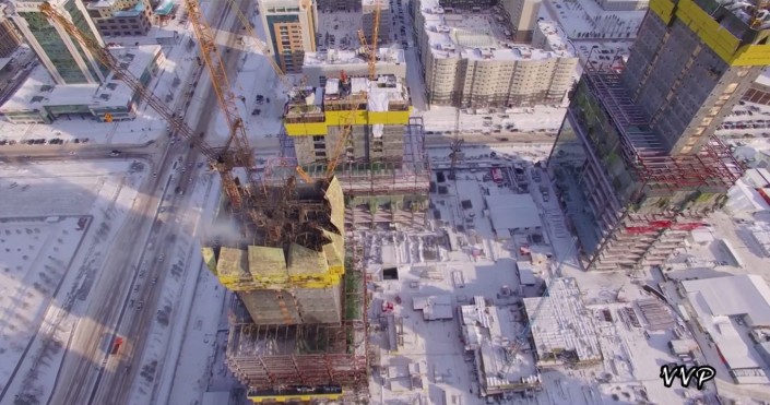 На канале Vit W на видеохостинге YouTube в субботу вечером появилось снятое беспилотником видео последствия крупного пожара в строящемся комплексе "Абу-Даби Плаза" в Астане.