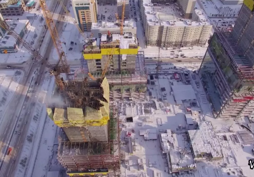 На канале Vit W на видеохостинге YouTube в субботу вечером появилось снятое беспилотником видео последствия крупного пожара в строящемся комплексе "Абу-Даби Плаза" в Астане.