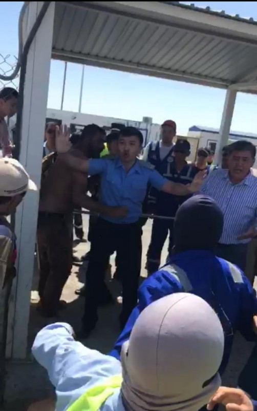 Инцидент произошел 29 июня примерно в 11.00 часов в вахтовом поселке Тенгиз. Рабочие компании "Сohsolited Contracting Endihering and Prourement S.A.L Offshore (CСЕР)" собрались на рабочем участке и выразили свое недовольство по поводу недавней публикации гражданина Ливии Eli Daoud, выставившего фотографию в профиле "WhatsАpp". На фотографии изображены девушка и сам Eli Daoud, у которого в руке рация, антенна которой направлена в сторону девушки.