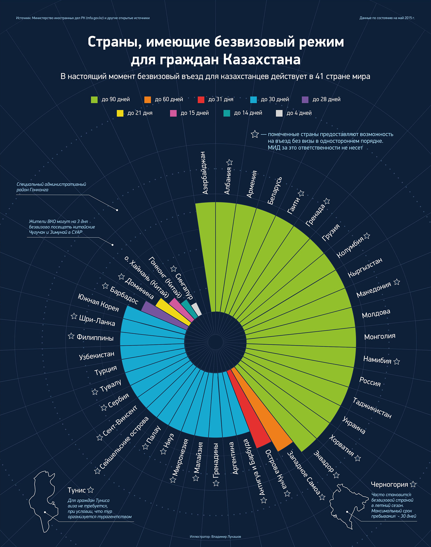 Безвизовые страны для Казахстана в 2015 году