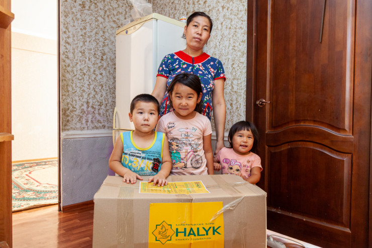 По решению председателя Попечительского совета БФ "Халык" Динары Кулибаевой Фонд передал 1000 наборов, состоящих из продуктов питания первой необходимости, моющих, антисептических средств и лекарственных препаратов, сертифицированных и зарегистрированных на территории Республики Казахстан, малоимущим и многодетным семьям в Атырауской области.
