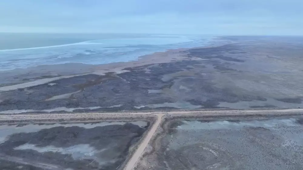 "Залив Сартас, южная береговая линия Каспийского моря Мангистауской области. Когда-то тут планировали построить целый морской порт, даже начали возводить инфраструктуру, но что-то пошло не так, и проект не реализовался. В настоящее время, став свидетелем масштабов обмеления Каспийского моря, с одной стороны, немного радуюсь за инвестора, который так и не вложился в этот проект. Нужно что-то делать. Разница между видео в ролике всего 2,5 года", - подписал видео блогер.