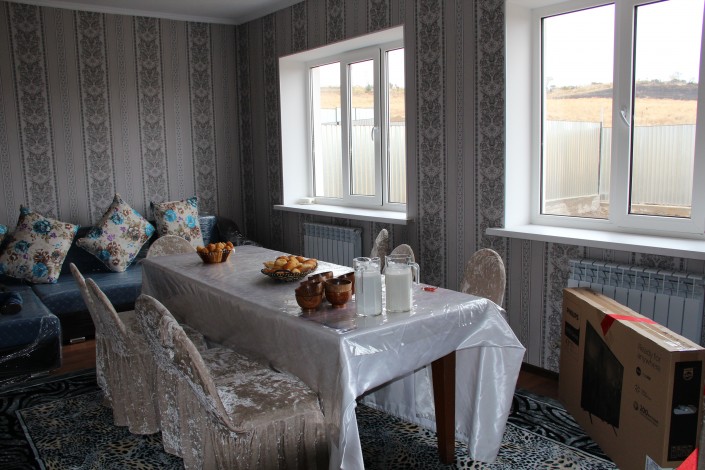 По данным акимата Алматинский области, строительные работы были начаты в апреле этого года и в течение 5 месяцев полностью завершены. Все дома подключены к системе централизованного водоснабжения, электричеству и газу, площадь каждого дома составляет 120 квадратных метров.