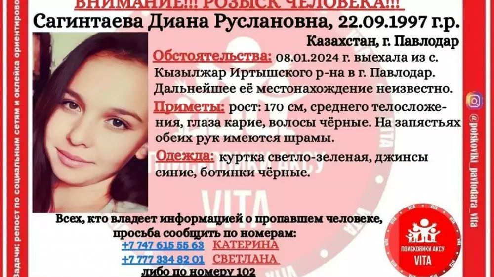 "Если вам известно местонахождение Дианы или вы владеете другой, не менее важной информацией, огромная просьба незамедлительно сообщить по номерам наших волонтеров: +7 (747) 615 55 63 Катерина, +7 (777) 334 82 01 Светлана", - просят волонтеры.