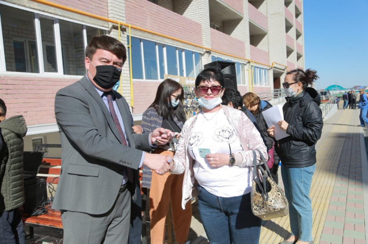 Счастливые новоселы заселились в 240 новых квартир, находящихся в микрорайоне Нурсая, и в 70 квартир микрорайона Береке.