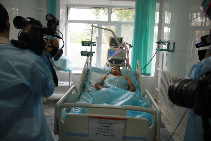 Главный врач Больницы скорой медицинской помощи Актобе Рахимжан Арыстан рассказал о состоянии пациентов, поступивших на лечение после терактов, сообщает корреспондент Tengrinews.kz.