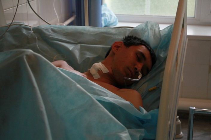 Врач рассказал, что всего в больнице находилось 18 человек. В понедельник утром умер один террорист, ему была сделана операция, но он все равно скончался, так как полученные травмы были несовместимы с жизнью. Также в больнице еще в первый день умер мирный житель, который попал под обстрел террористов.