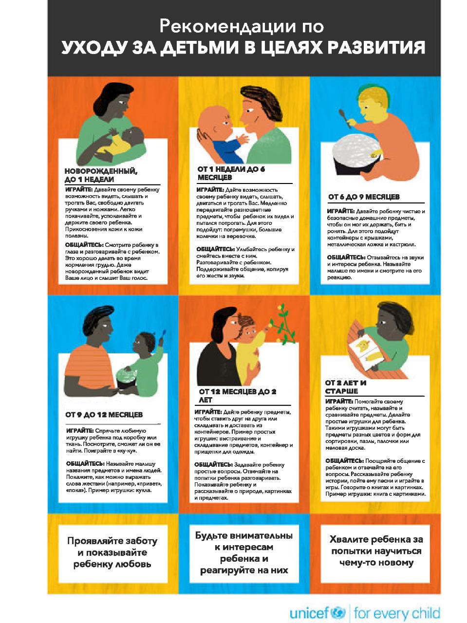 Чтобы помочь родителям качественно проводить время со своими детьми, ЮНИСЕФ совместно с Правительством разработал брошюры с простыми рекомендациями "Учимся быть хорошими родителями. Для детей в возрасте от 0 до 3 лет" и "Забота о развитии вашего малыша".