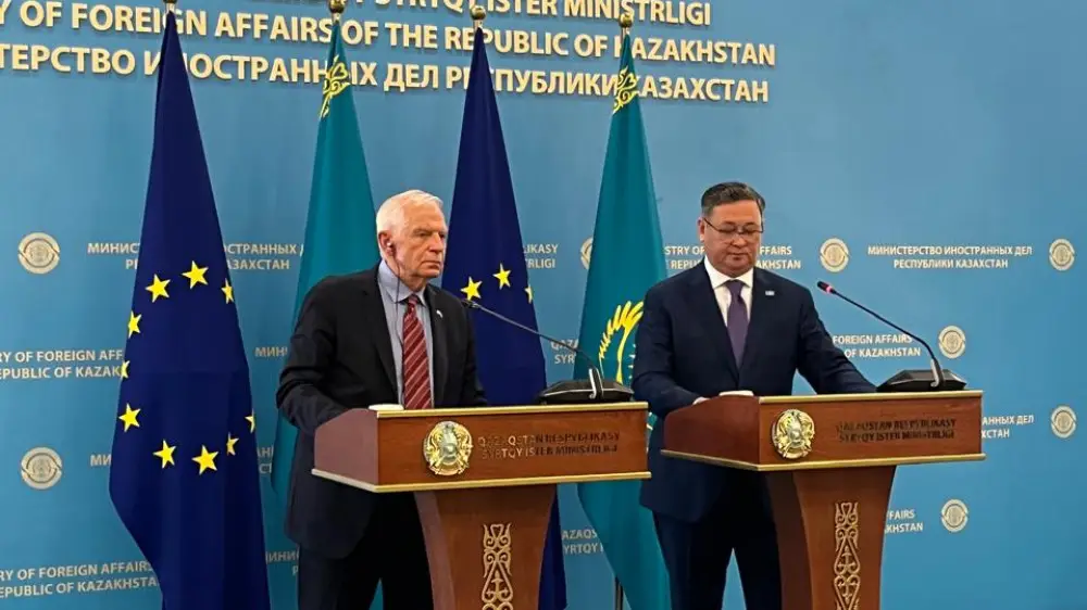 1 августа в Казахстан с официальным визитом прибыл представитель Евросоюза Жозеп Боррель. В рамках визита в Астане прошли переговоры между ним и заместителем премьер-министра - министром иностранных дел Муратом Нуртлеу.