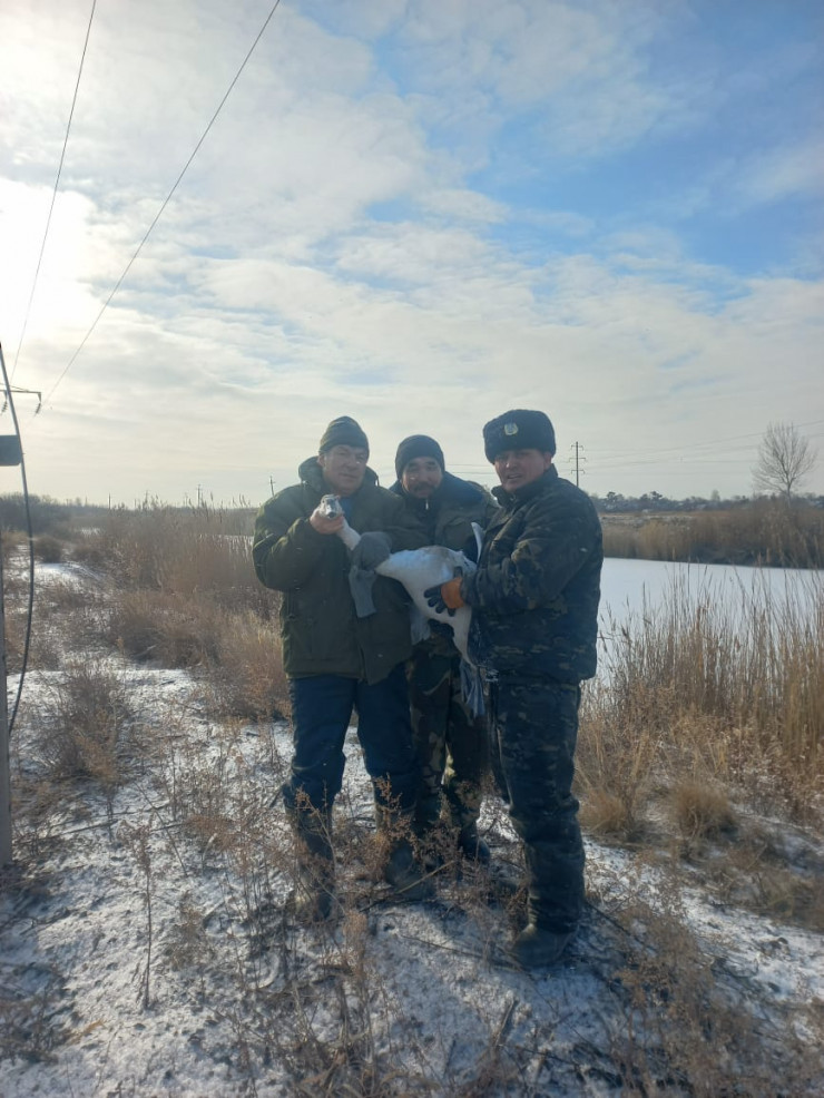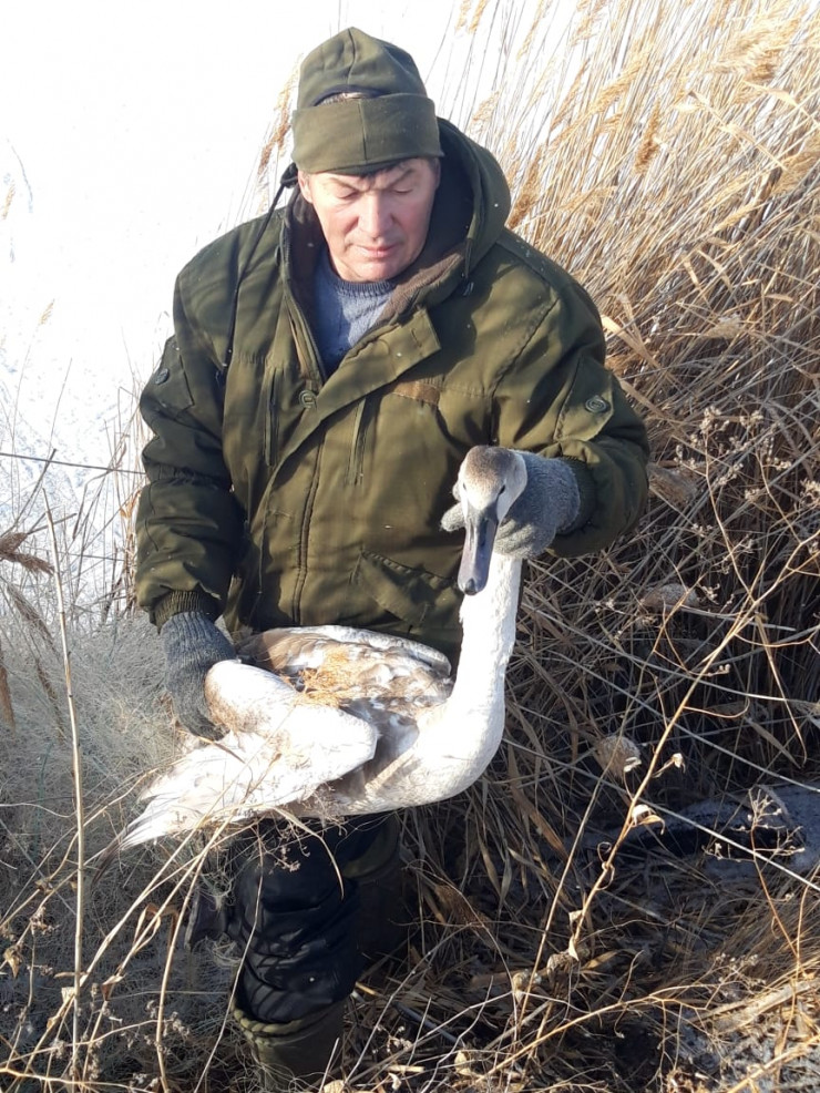 О бедствующем лебеде павлодарским волонтерам сообщил проводник одного из поездов, а те обратились за помощью к лесникам.
