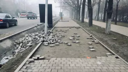 Брусчатку, бордюры и остановки ремонтируют в Алматы Фото Tengrinews.kz/Алихан Сариев
