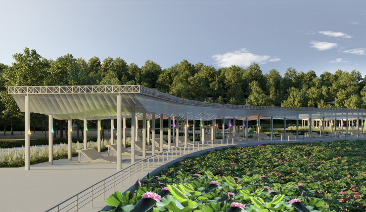 Озеро лотосов и пергола на южной набережной. Эскизы акимата Алматы