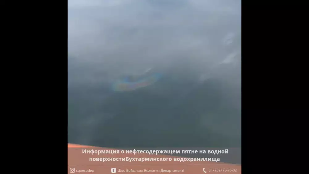На Бухтарминском водохранилище обнаружили нефтесодержащее пятно Кадр из видео
